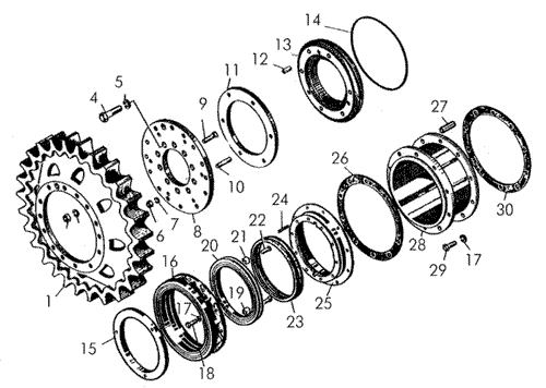 Детали бортовых редукторов Т-170 (ведущее колесо, лабиринтное уплотнение, проставка)