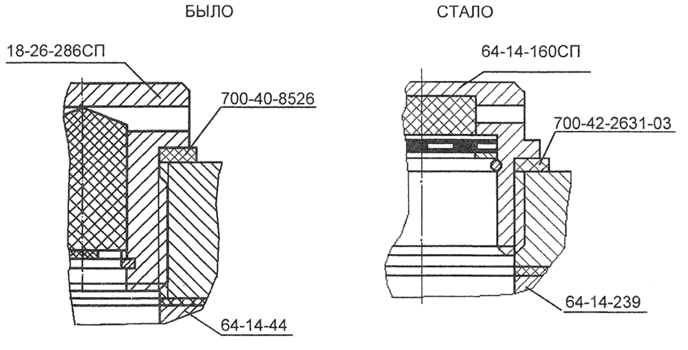 Введены следующие изменения сопрягаемых деталей и сборочных единиц: