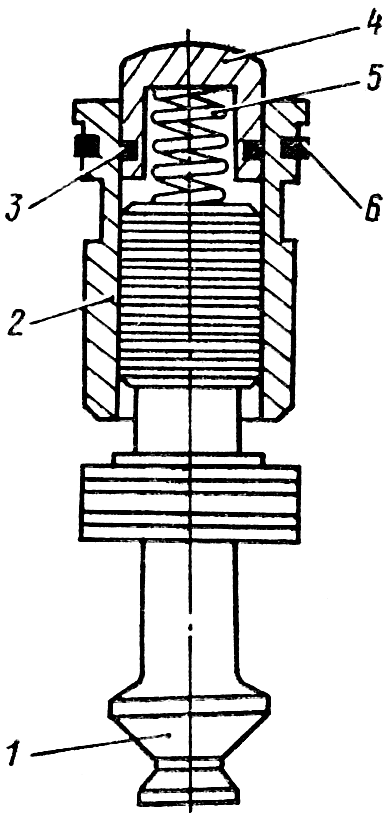 Примечание: законтрите винт 5 гайкой 3 и установите колпачок 1 с кольцом 2 после регулирования предохранительного клапана. Колпачок застопорите Проволокой и опломбируйте.