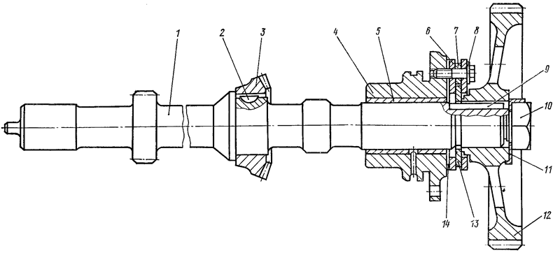 Рис. 173. Валик привода к насосу и регулятору
