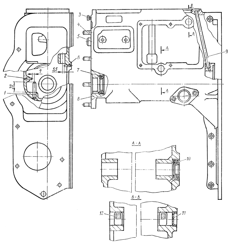 Выпрессуйте сальник 10, трубку 9 подвода масла, штифты и втулки только при необходимости их замены или ремонта.